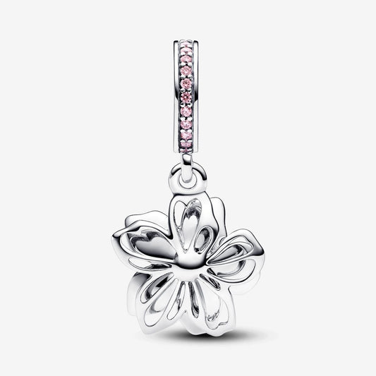 Cherry Blossom Dangle Charm Hallmarked S925 Sterling Silver
