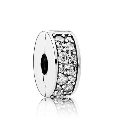S925 Round Clip Stopper Clear Pink Blue Purple Sterling Silver Charm Collection