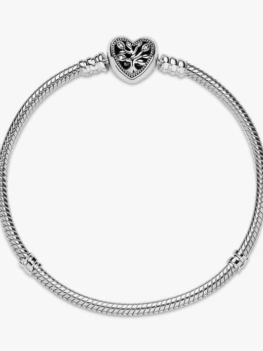 Family Tree Heart Clasp Snake Chain Charm Bracelet