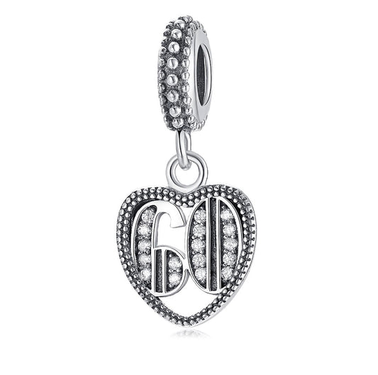 60th Birthday Dangle Charm Hallmarked S925 Sterling Silver