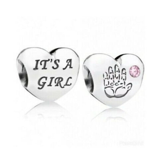 It's a Girl Heart Charm Hallmarked S925 Sterling Silver