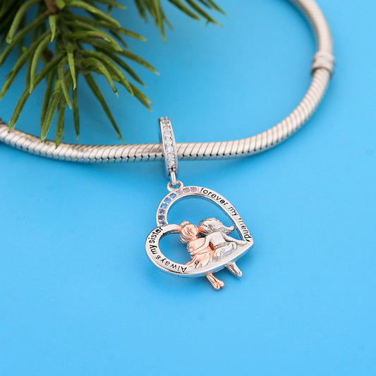 Love You Sister Heart Charm Hallmarked S925 Sterling Silver