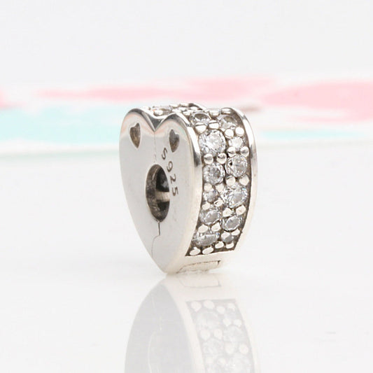 S925 Heart Clip Stopper Pink Clear Multicolour Sterling Silver Charm Collection