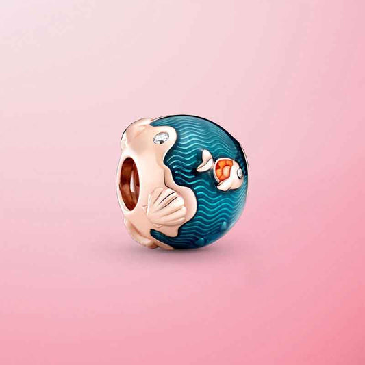 Ocean Sea Life Waves & Fish Charm Hallmarked S925 Sterling Silver