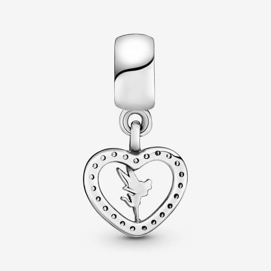 Disney Tinkerbell Heart Dangle Charm Hallmarked S925 Sterling Silver