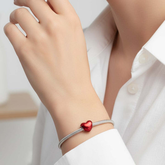 Metallic Red Heart Charm Hallmarked S925 Sterling Silver