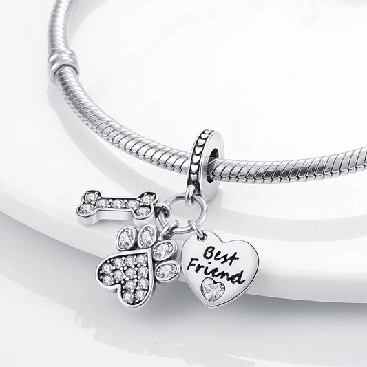Dog Bone Paw Print Best Friend Charm Hallmarked S925 Sterling Silver