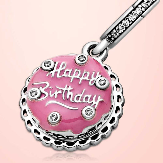 Birthday Cake Dangle Charm Hallmarked S925 Sterling Silver