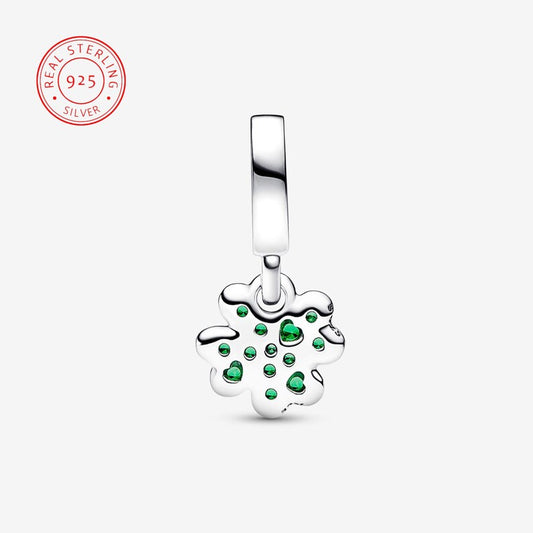 Four Leaf Clover Dangle Charm Hallmarked S925 Sterling Silver