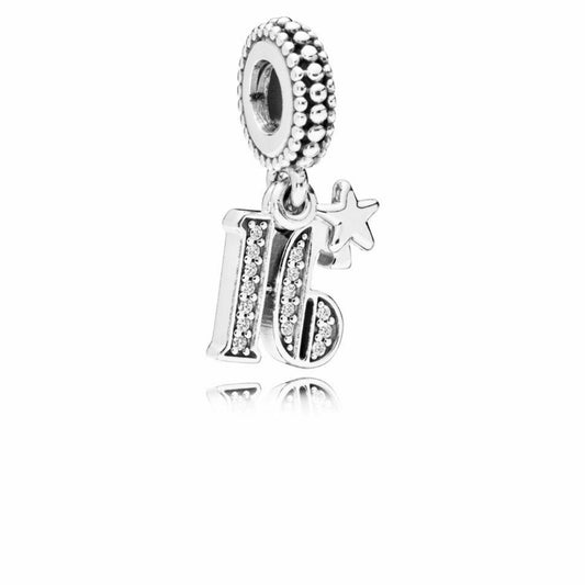 16th Birthday Dangle Charm Hallmarked S925 Sterling Silver