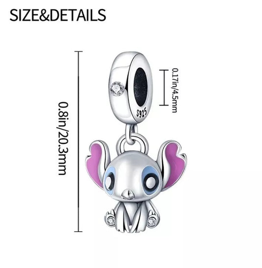 Disney Stitch Dangle Charm Hallmarked S925 Sterling Silver