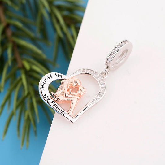 My Mother My Friend Dangle Heart Bracelet Charm Hallmarked S925 Sterling Silver