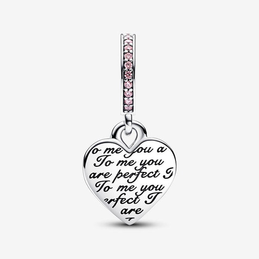 Two-tone Infinity Mum Heart Double Dangle Charm Hallmarked S925 Sterling Silver