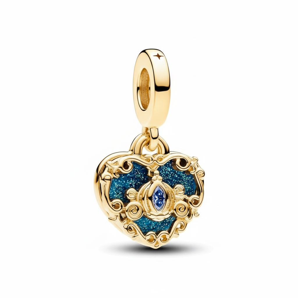 Disney Cinderella's Carriage & Heart Double Dangle Charm Hallmarked S925 Sterling Silver