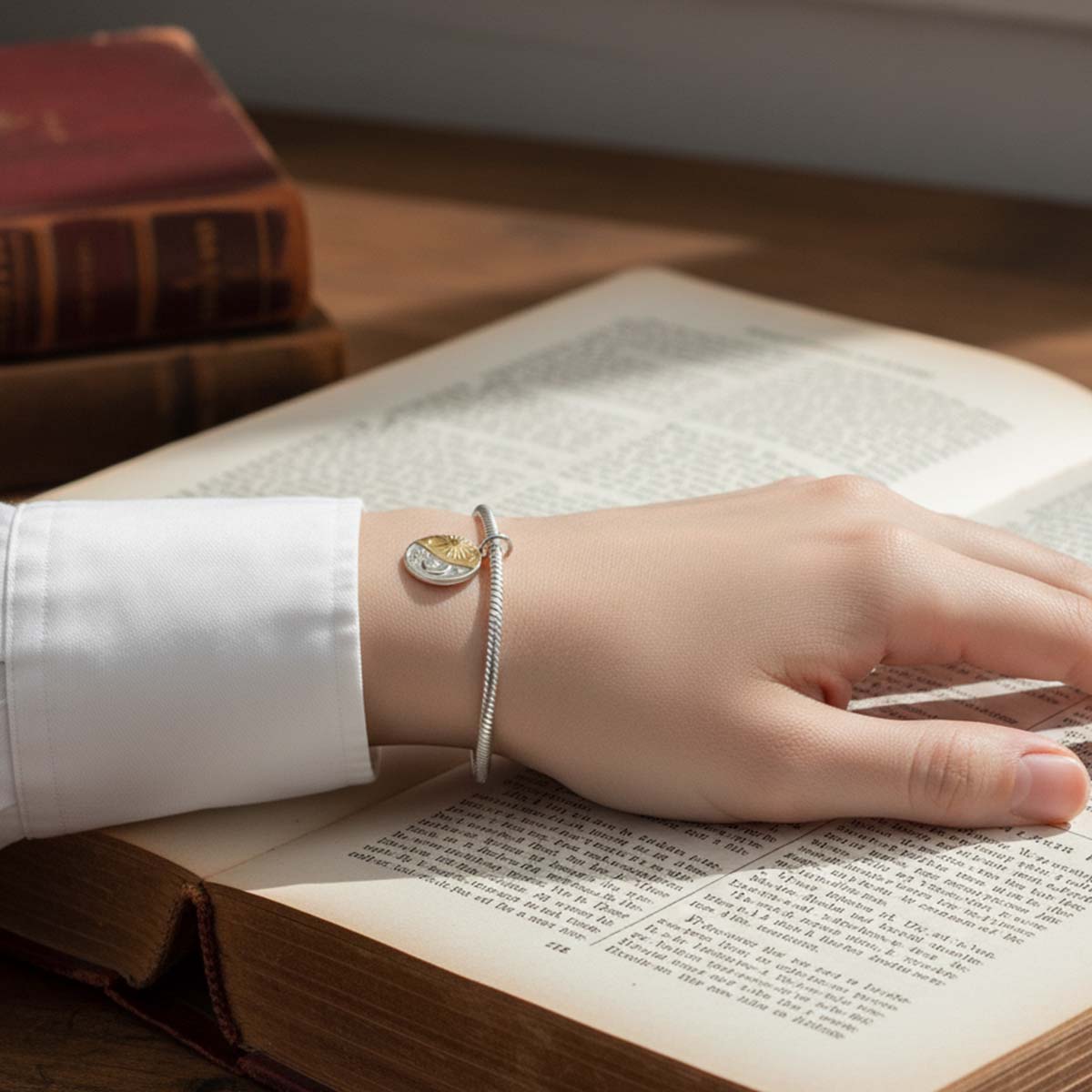 Sun and Moon Medallion Charm Hallmarked S925 Sterling Silver